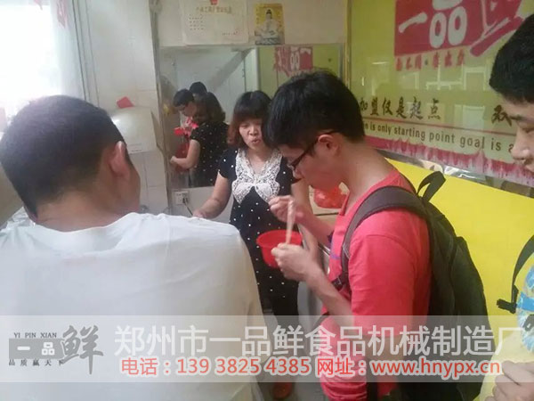 杭州面館老板想找一臺能代替面食點師傅的好設備,經多方面尋找終于在網上找到鄭州一品鮮,立即來總部考察。經過出面,嘗面,去廠區考察后果斷做出決定買回設備,一方面供自己面館使用,另外帶批發其它面館。