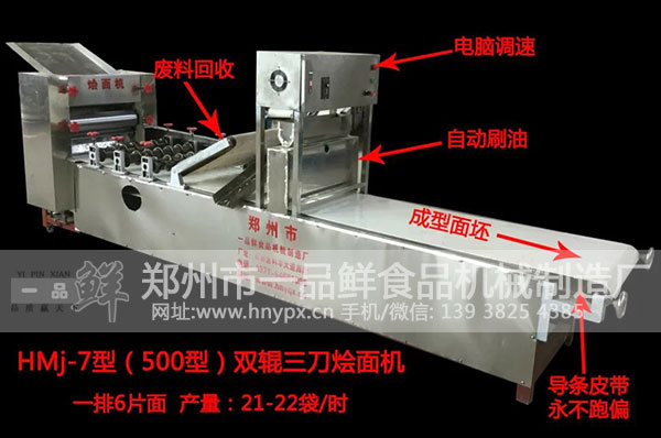 濟源胡先生是一品鮮的老用戶,用一品鮮設備已有六年之久,胡先生以過硬的產品質量贏得了大量的客戶的信譽和口碑,新年的開始胡先生就想到了拓展業務更換設備,經來公司考察定下了公司新設備燴面機500型,500型全自動燴面機電腦控調速可控快慢,產量更高,所生產面坯相比單輥機出的面坯外觀整齊一致,一排可出6片燴面,產品賣相好面坯更筋道,可生產橢圓形,棗核型面胚,重量厚度可調,尺寸可定制,自動刷油,自動處理廢片。隨時歡迎新老客戶考察!