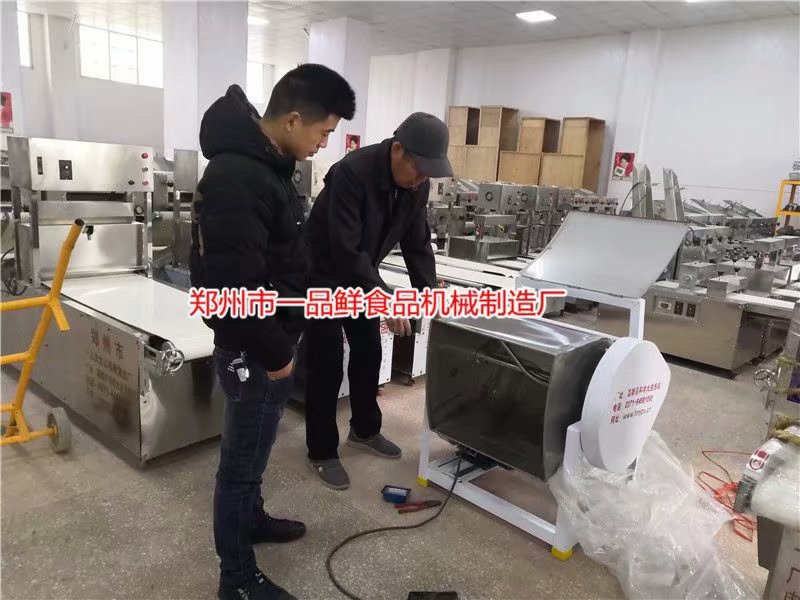 安徽阜陽客戶第二次來到一品鮮總部,定購全套8代多功能成型機設備??蛻粼澢绊樎房疾爝^一次,回家安置好店面后,再次前來購買設備,并且進行技術培訓。目前設備已經當面調試完畢,下午立刻發貨。