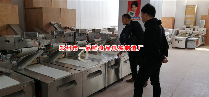 重慶人張老板在甘肅做面條批發多年,但是對于甘肅當地的特色揪面片和拉條子,卻是用手工做 的。因為普通的面條機做不出來,也在一直尋找好用的設備來代替手工生產。最近聽親戚說一品鮮的多功能機器用著不錯,所以前來一品鮮總部實地考察。